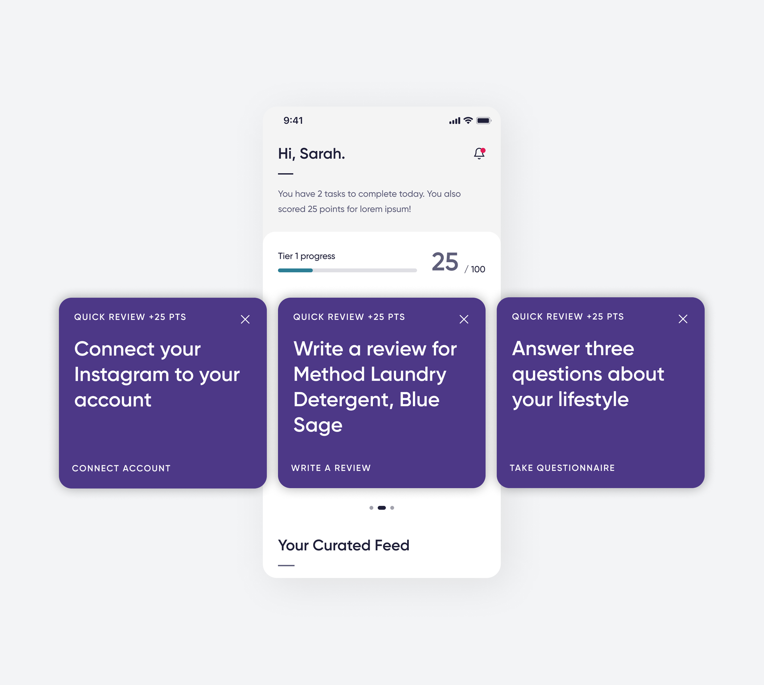 I redesigned the Home Feed to unify disjointed features, using gamified tasks and versatile content cards to boost engagement, encourage reviews, and collect valuable user data for personalization and B2B targeting.